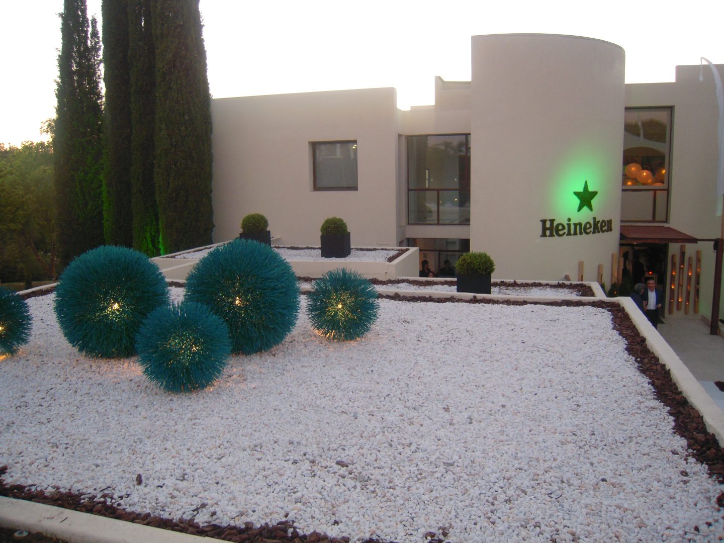 Nuestro equipo se encargó del diseño y la ambientación del evento, trabajando tanto en espacios interiores como exteriores. La propuesta se basó en una cuidada iluminación indirecta, reforzada con bañadores de pared en verde corporativo Heineken, que aportaron identidad de marca y coherencia visual a todo el conjunto.